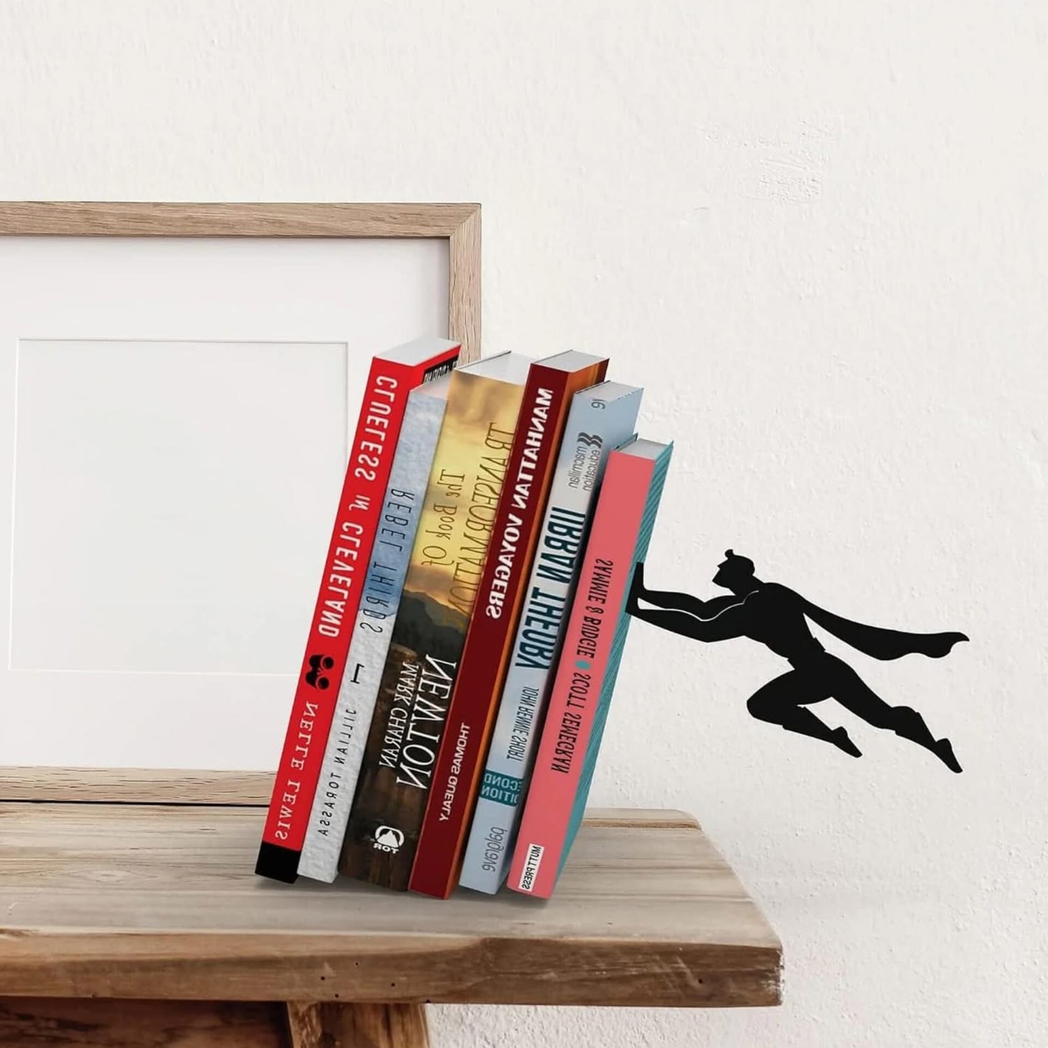 A sleek mini bookshelf designed to hold a few books while adding a modern touch to your desk.